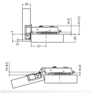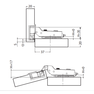 CERNIERE A CHIUSURA AMMORTIZZATA COLLO PIANO CASSA DA 35 SGANCIO RAPIDO