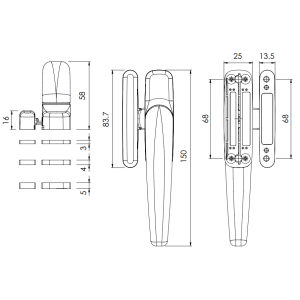 TAVELLINO VERNICIATO NERO RAL.9005 MANICO LUNGO CON SPESSORI DI MONTAGGIO